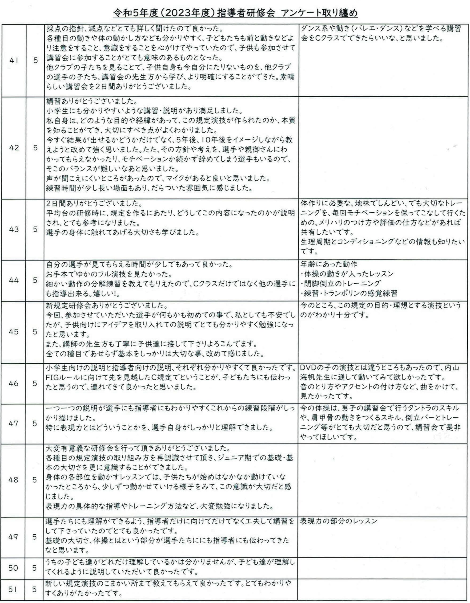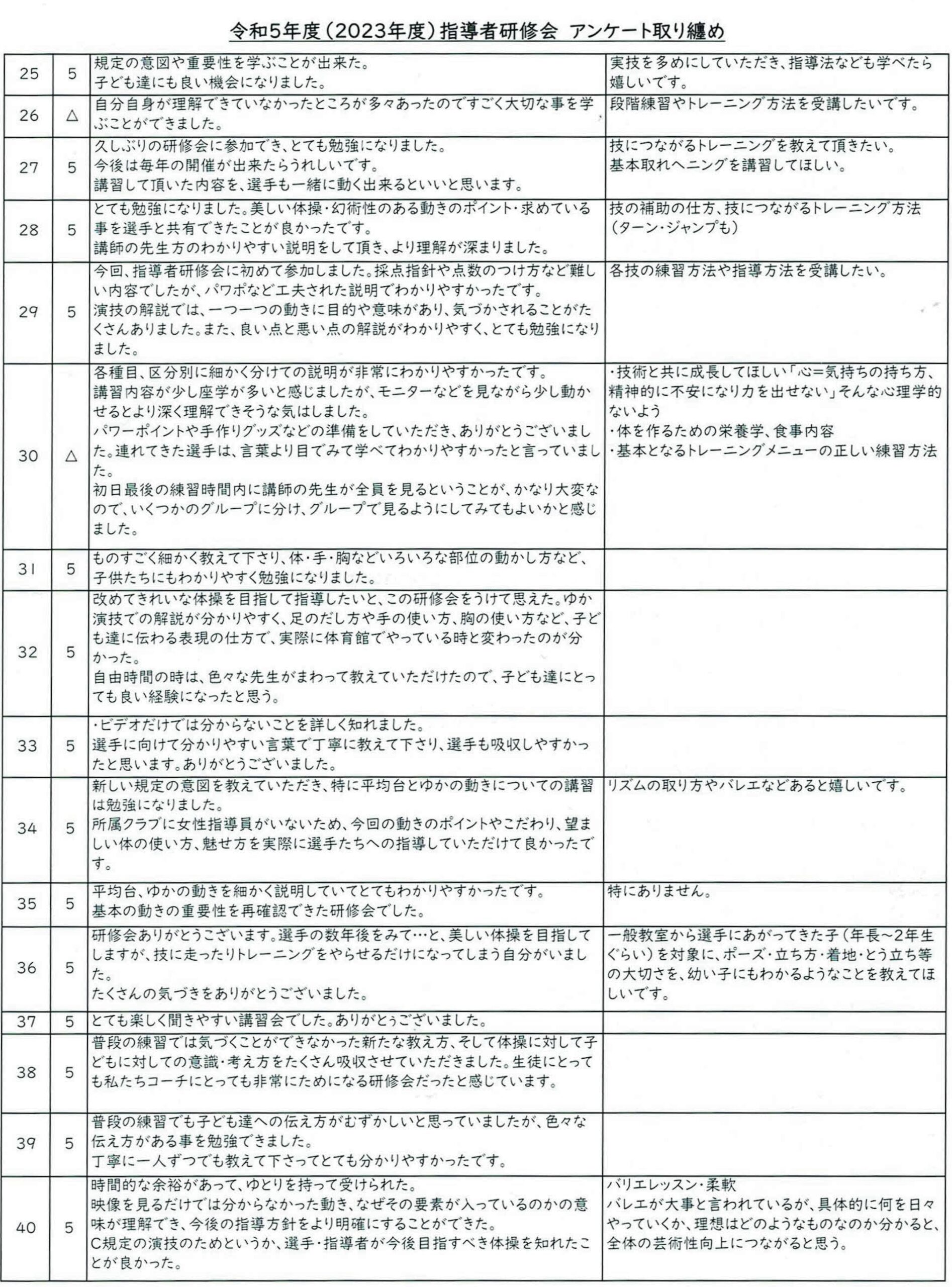 アンケート調査による集計のご紹介と今後の指導者研修会の有様について